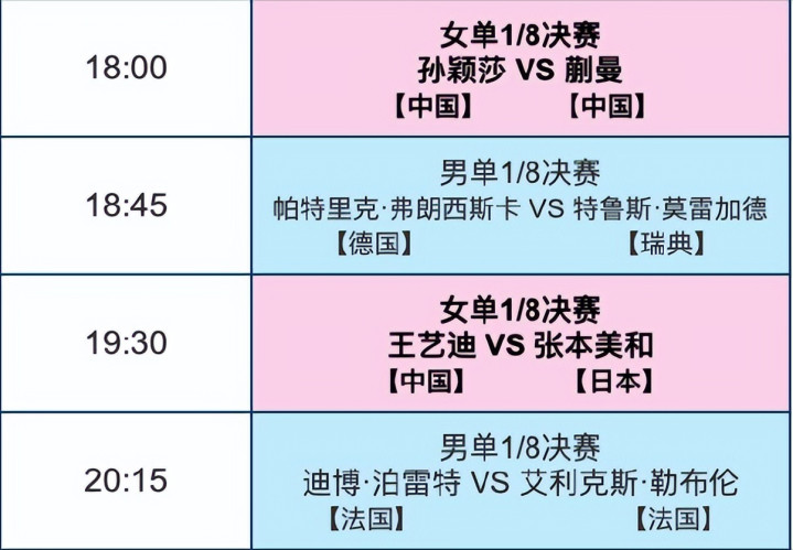 因为孙颖莎跟蒯曼的比赛时间在18点准时打响,是晚场第一场,所以或许只直播后面的比赛,甚至提早结束,只能到其他平台进行观看。