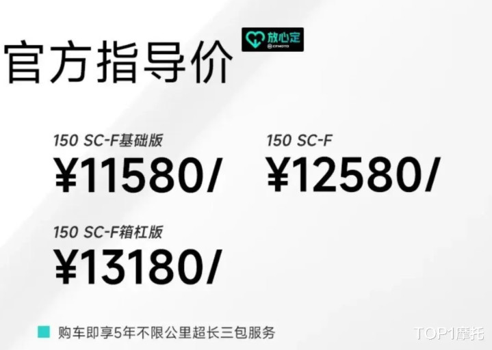 春风150SC-F共有三个版本,基础版11580元,高配版12580元,箱杠版13180元。三个版本的价格相差不大,但是配置差距还是比较明显的,小编觉得12580的高配版更有吸引力,当然前提是你对原厂尾箱护杠没需求。外观颜值优势