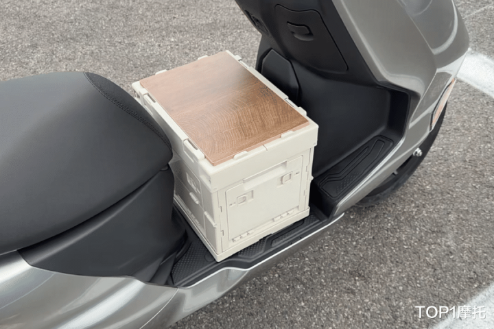 平踏板空间虽然春风没有给出明确的尺寸数据,但是小编实测纵向最窄之处能容纳43码的运动鞋,放外卖箱什么的没问题,平时放桶装水、大米这些大件重物也不在话下。