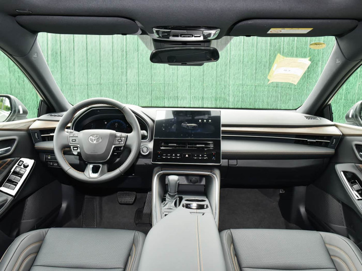 进入车内,2026款亚洲龙的内饰调整让人眼前一亮。老款被诟病的“塑料感”得到彻底改善,中控台、门板等区域大面积采用软质包覆,搭载12.3 英寸全液晶仪表 + 12.8 英寸悬浮中控屏,界面简洁、响应更快,支持 CarPlay/HiCar、语音控制、OTA 升级,全系标配 L2 级 T-Pilot 智驾,含全速自适应巡航、车道保持、主动刹车,实用配置拉满。空间方面,2870mm 轴距带来越级表现:前排座椅宽大厚实、支撑到位,180cm 驾驶者头部一拳余量;后排腿部空间达两拳以上,头部一拳,中间地台隆起低,满载 5 人也不局促。